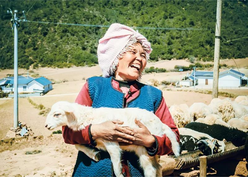 发展产业是实现脱贫的根本之策。通过产业扶持,中国华能四川公司对口帮扶的凉山州昭觉县团结村脱掉了贫困村的帽子。图为2020年3月30日,该村一贫困户在“借羊还羊”项目获得丰收后喜笑颜开。中国华能四川公司供图 何松/摄