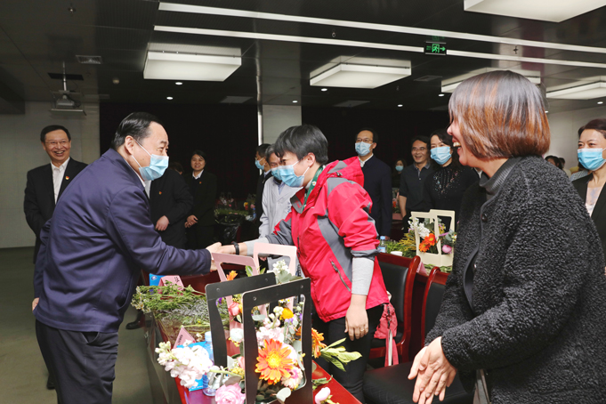 调研中,适逢三八国际妇女节,郝鹏看望慰问了正在听插花讲座的企业女职工,向大家致以节日的祝贺和美好的祝福。 国资委有关厅局负责同志参加调研。